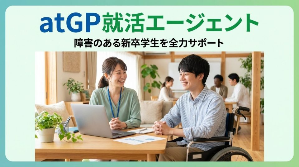 atGP就活エージェントは、障害のある新卒学生に特化した就活支援サービスです。専任のキャリアプランナーがマンツーマンでサポートし、障害配慮のある企業への就職を実現できる点が大きな特徴となっています。